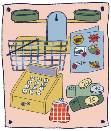 V prvním bloku se děti postupně seznamují s prostředím obchodu a jeho fungováním. Vstupují tak do světa, který dosud znaly pouze z pozice zákazníka. Prostřednictvím her, dramatizací a různorodých činností postupně objevují, co všechno se za chodem obchodu skrývá. Děti si zkouší role nakupujících, prodavačů a dalších profesí. Postupně se orientují v nabídce zboží, kterou pak mění podle svých potřeb a plánů. Získávají povědomí o penězích, jejich hodnotě a významu práce. Přirozenou cestou se seznamují i s dalšími tématy, jako jsou plánování, šetření a odpovědné rozhodování.