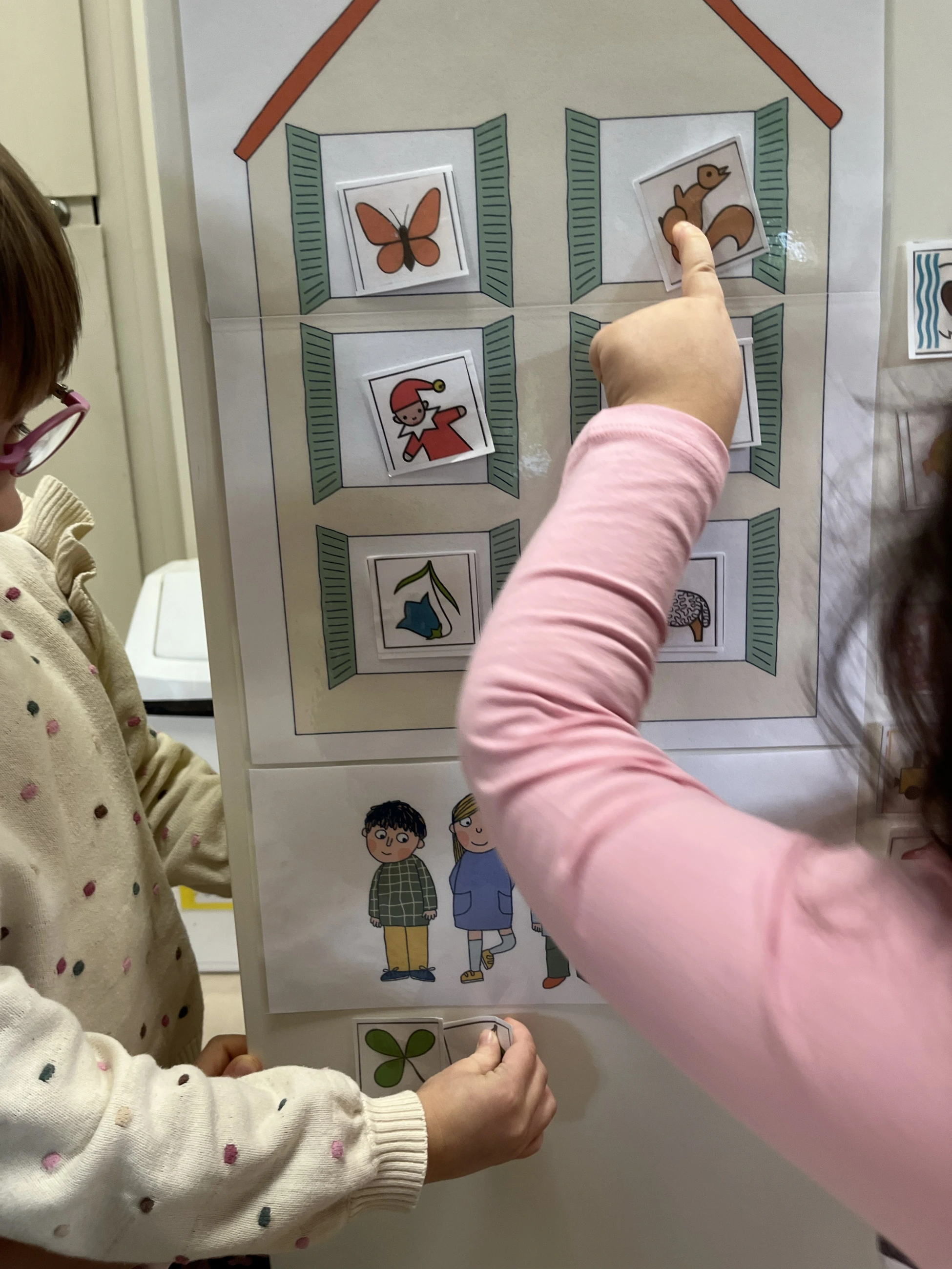 Vysvětlíme dětem rozdíl mezi hláskou – zvukem, který slyšíme a vyslovujeme, a písmenem, které vidíme a píšeme. Zkoušíme určovat první hlásku u jednotlivých členů rodiny: Jaká je první hláska ve slově máma, táta, babička, …?