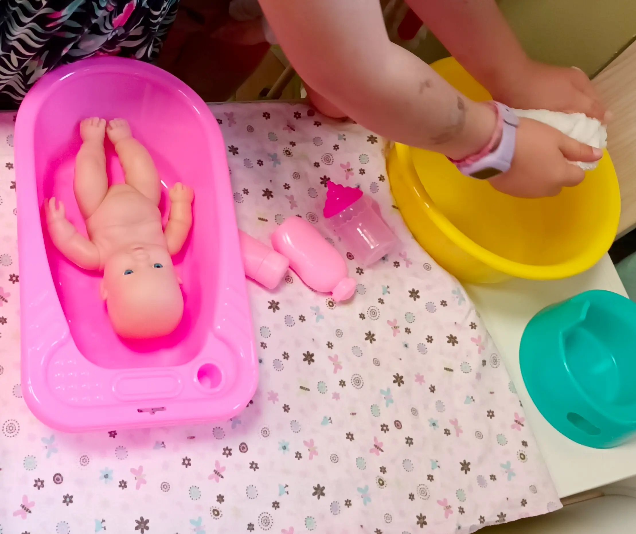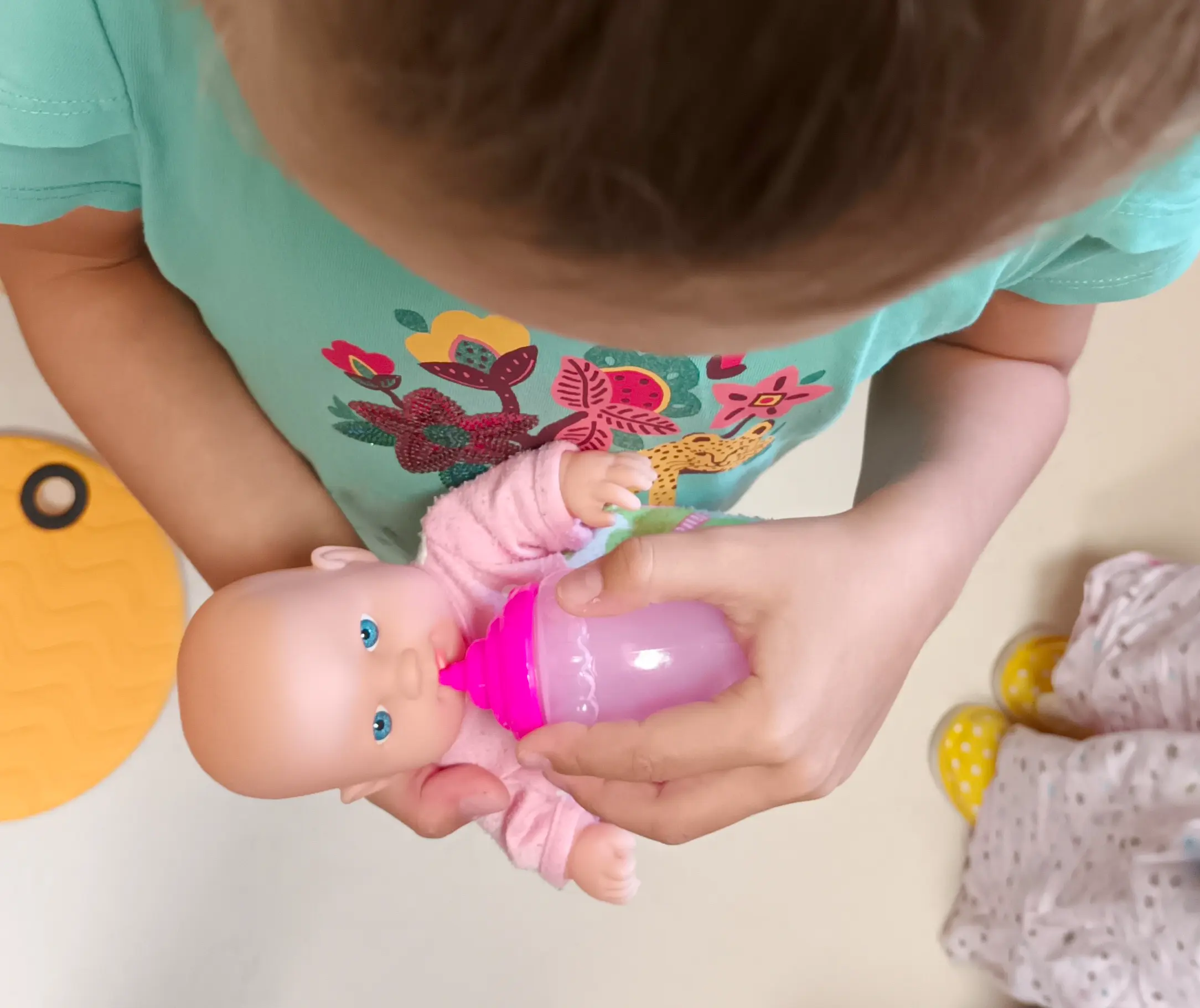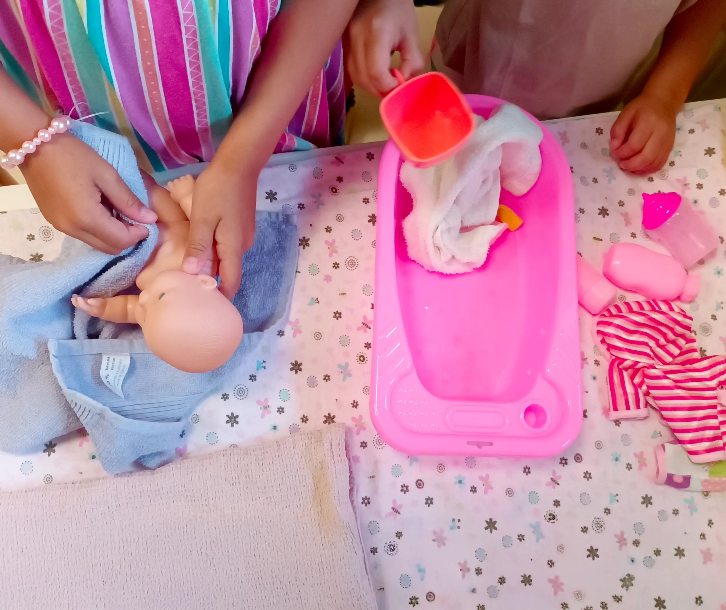 Cíle: Při manipulaci s miminkem se děti učí opatrnosti, pocitu odpovědnosti, učí se spolupracovat. Převezmou zcela novou roli. Při péči se také učí plánovat, když přemýšlí o posloupnosti jednotlivých fází činnosti. Rozšiřují si slovní zásobu, zlepšují koordinaci a propojení hemisfér.