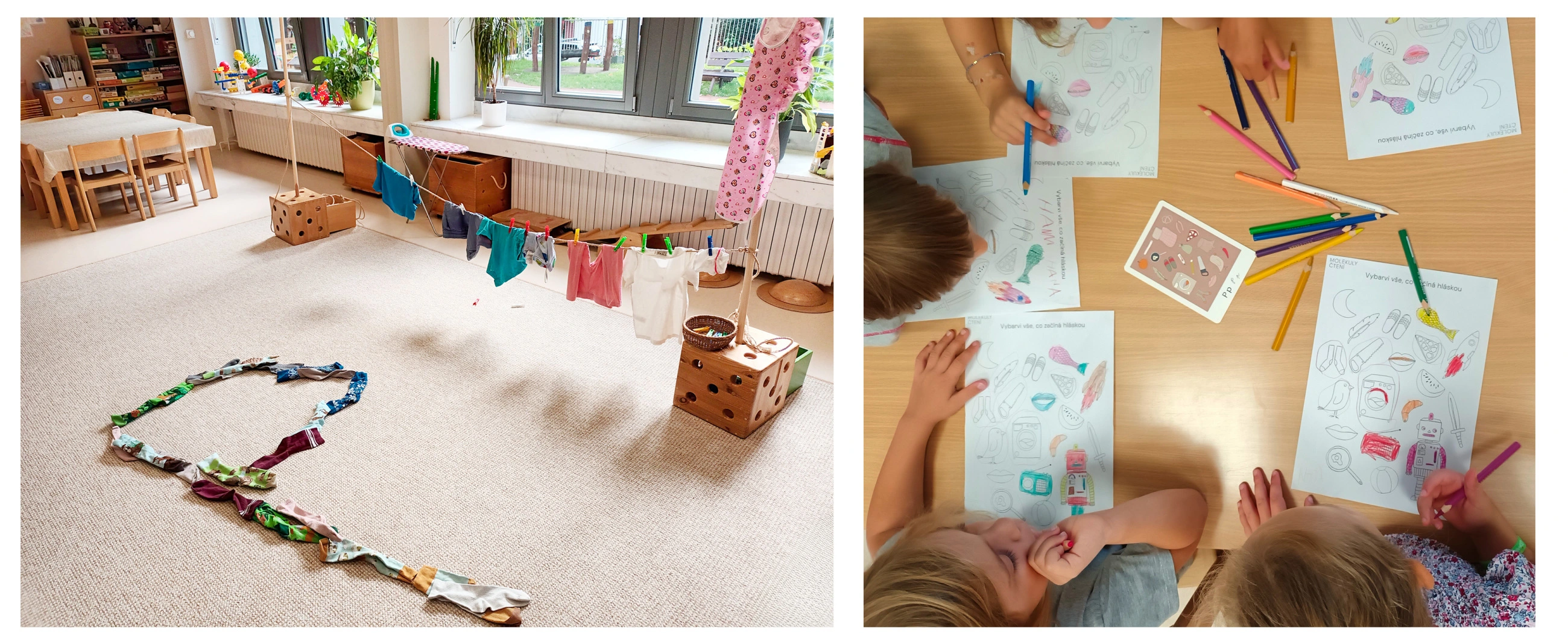 S dětmi vypracujeme pracovní list. Zakroužkujeme všechny obrázky začínající hláskou P (pracovní list CO ZAČÍNÁ NA... R, P, M).