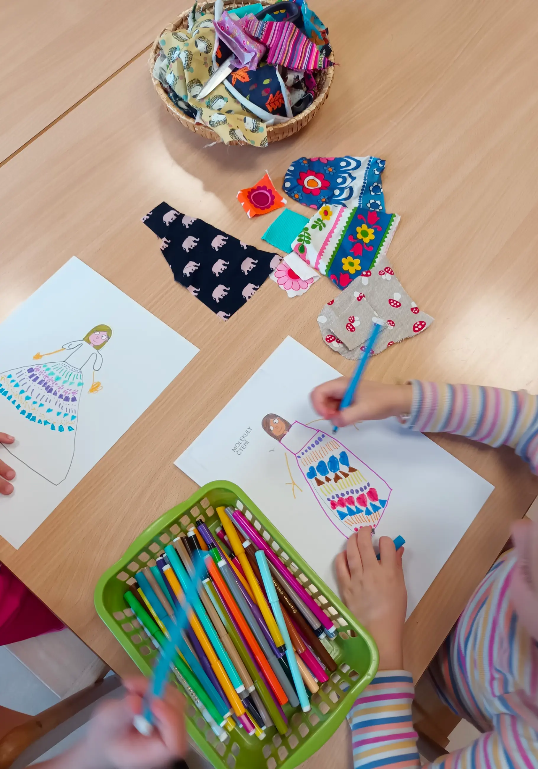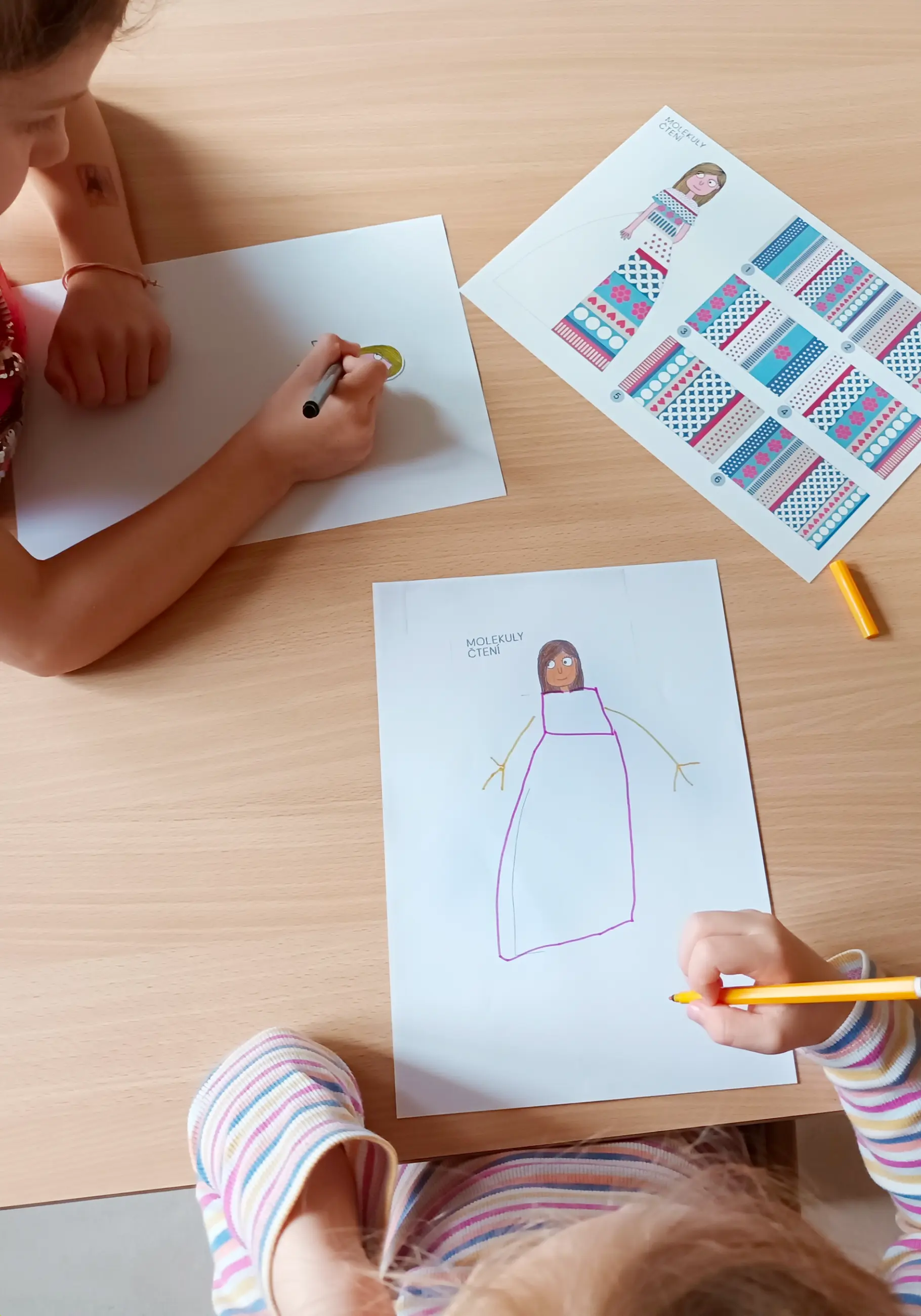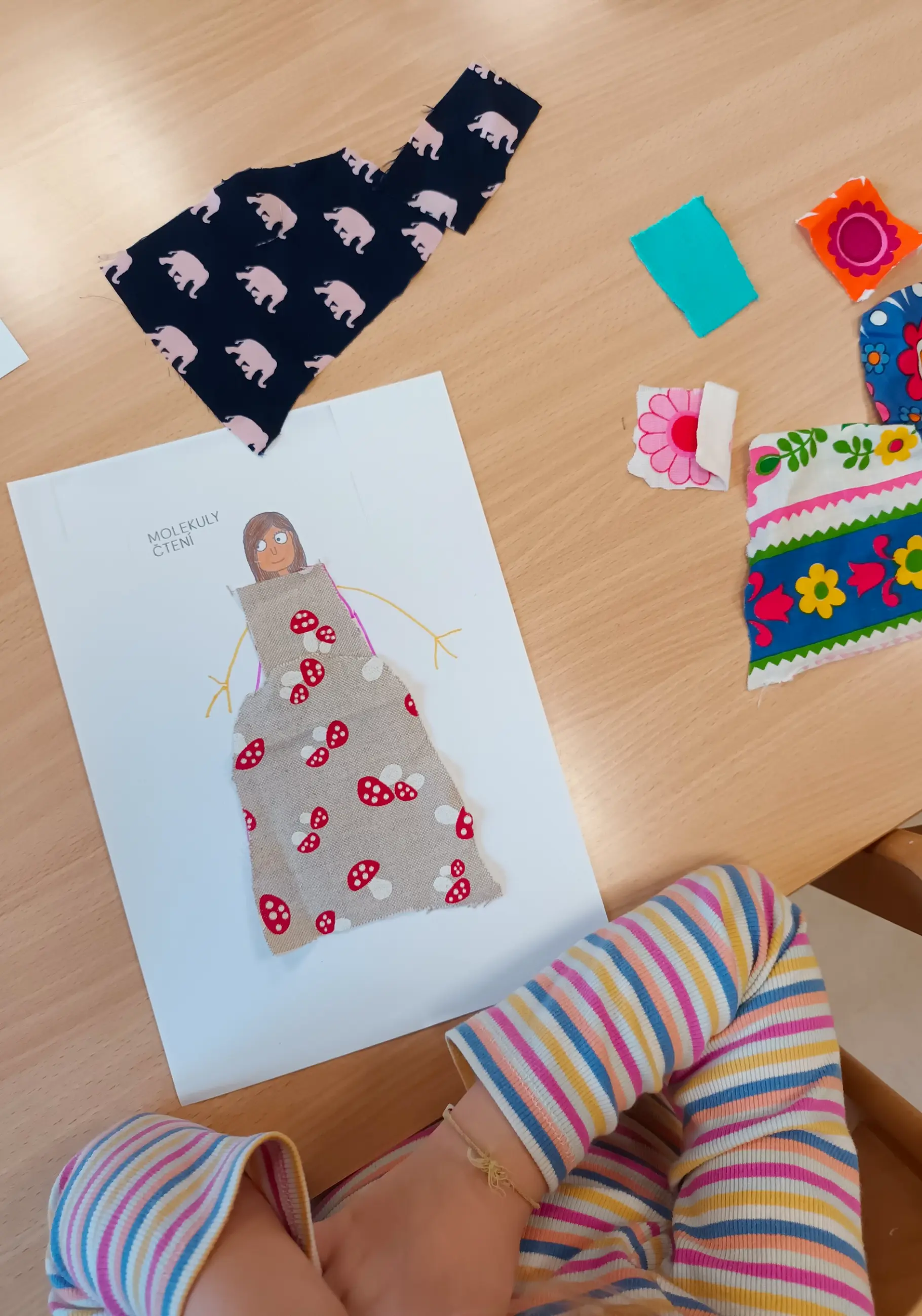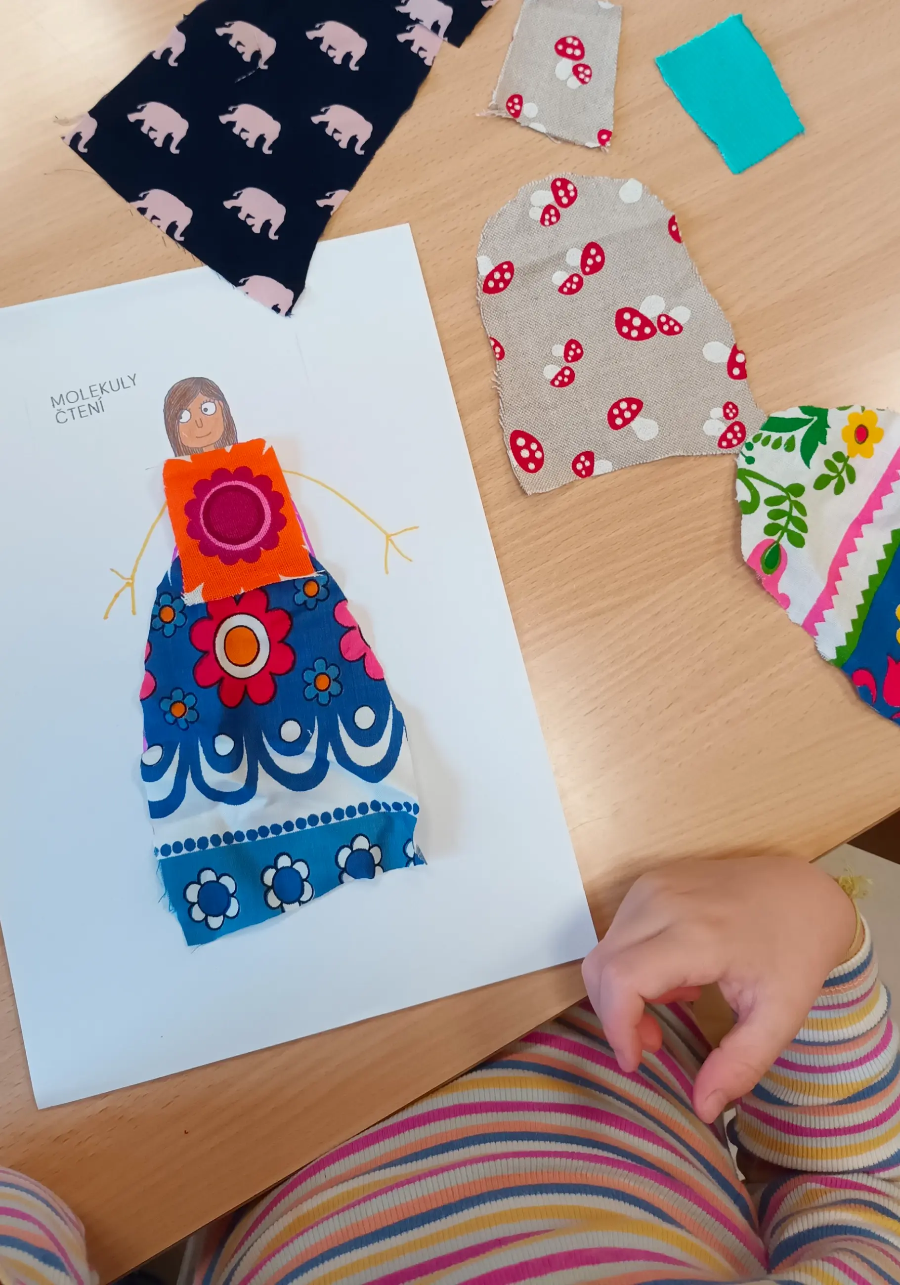 Děti si v tomto bloku mimo jiné zkouší nejrůznější činností spojené s šitím a oblečením. Kromě praní a drobných oprav oblečení, které již mají k dispozici, jim nabídneme možnost tvořit své vlastní návrhy oděvů. Děti tvoří návrhy jak kresbou na papír, tak pomocí malých kousků látek. Navrhují celé oděvy i vzor látek, třeba pomocí tiskátek, kdy si vyzkoušíme střídání tvaru podle určitého vzorce. Vyrábět mohou i oděvní doplněk, vyzkoušíme si zapínání zipů, knoflíčků, dělání uzlíků a mašliček. Tyto činnosti rozvíjí tvořivos,t ale také jemnou motoriku a schopnost sebeobsluhy. Nad obrázky si vyprávíme, jaké oblečení se hodí pro určitou příležitost.