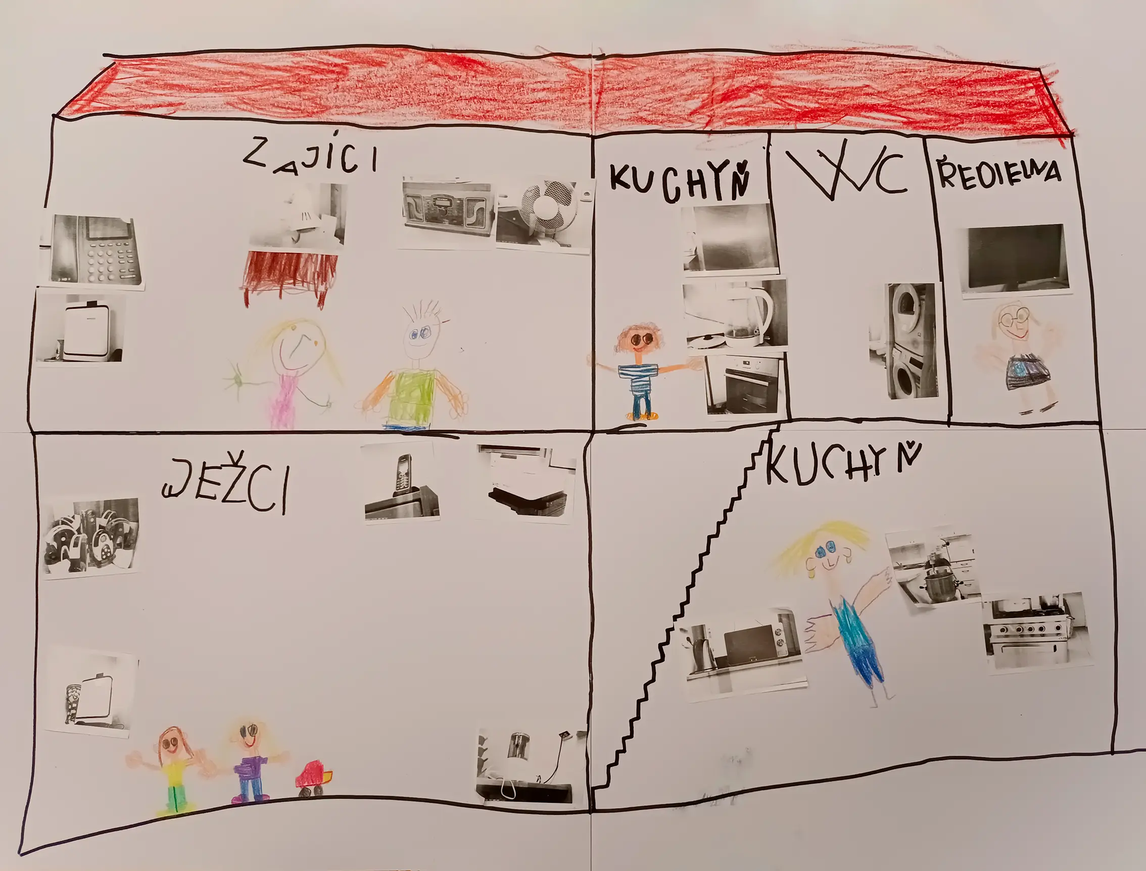 Mnohdy si ani neuvědomujeme, kolik máme kolem sebe pomocníků v podobě domácích spotřebičů. Pokud nám to bezpečnostní a hygienické podmínky dovolí, uděláme si průzkum školkou a vyfotíme si všechny spotřebiče ve školce. Fotky si prohlédneme a povíme si, k čemu který spotřebič slouží. Uděláme si nákres průřezu školky a vložíme do něj fotografie. Nákres budovy školky doplníme kresbou a jednoslovnými popisky. Kde je spotřebičů nejvíce, kdo je používá, jaké stejné máme doma. Pomůcky, které se hodí při rozvoji poznání o domácích spotřebičích, jsou: DOMÁCÍ SPOTŘEBIČE, SUDOKU - DOMÁCÍ SPOTŘEBIČE, U NÁS DOMA a SLABIKOVÁNÍ - DOMÁCÍ SPOTŘEBIČE.