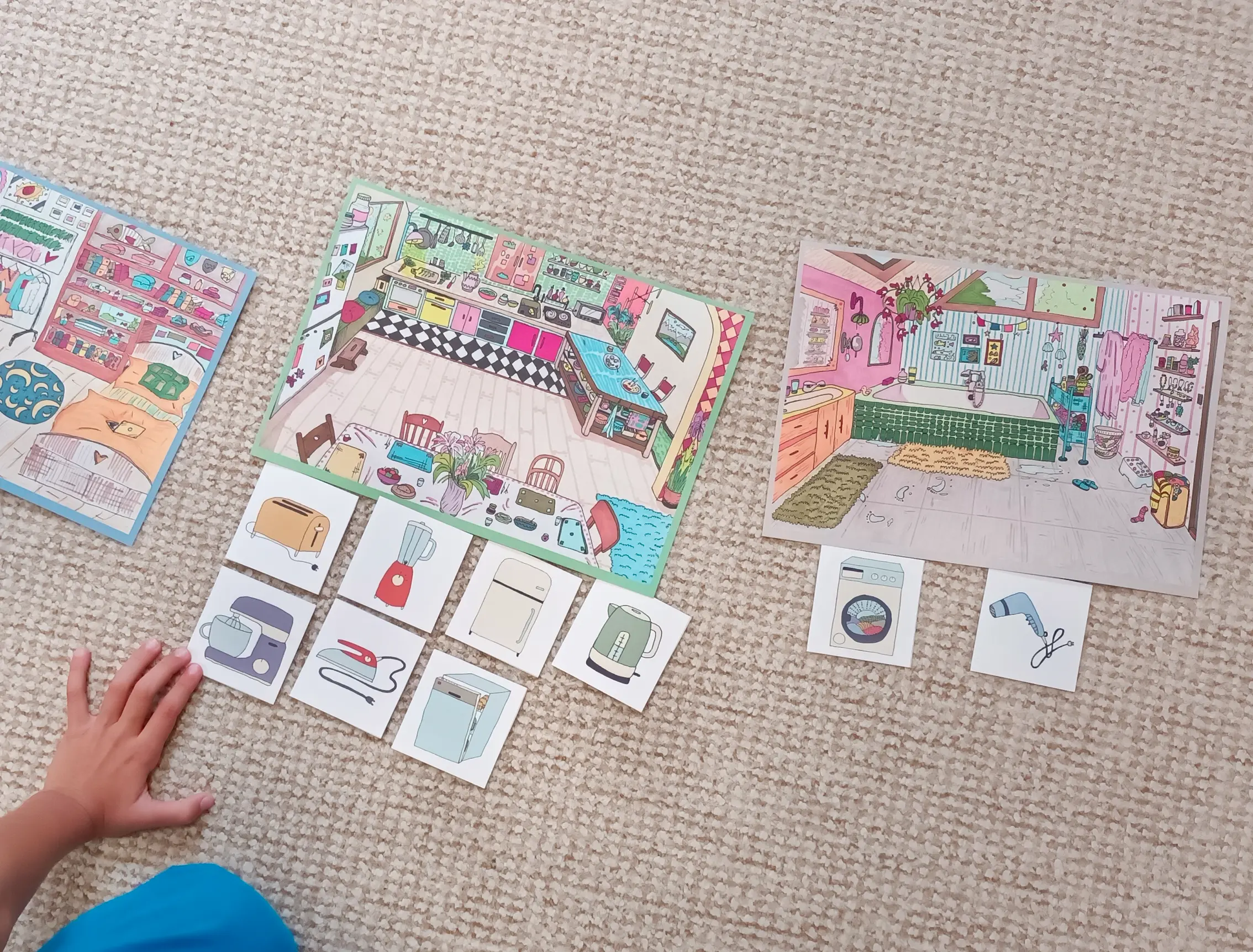 Společně si prohlédneme knihu U nás doma, která přibližuje různé místnosti v domě a činnosti, které v nich lidé vykonávají. Povídáme si o tom, že v každé domácnosti najdeme spotřebiče, které nám usnadňují každodenní život. Pomáhají nám vařit, prát, ohřívat jídlo, sušit prádlo nebo vysávat. Děti sdílejí, jaké spotřebiče znají z domova, kdo s nimi obvykle pracuje a k čemu slouží. Společně přemýšlíme, jak mohou i děti doma pomáhat. Vysvětlíme si, že některé přístroje mohou být horké nebo ostré, a proto je při práci vždy důležitý dohled dospělé osoby, opatrnost a pozornost. Také si povídáme o tom, jak moderní technika šetří čas i námahu, avšak je nutné s ní zacházet opatrně, pravidelně ji čistit a po použití vypínat, abychom neplýtvali elektřinou. V centru je připraveno několik hracích spotřebičů, které mohou děti bezpečně využívat jako je například mixér, trouba, toustovač, rychlovarná konvice či žehlička. Při hře zkoumají, jak jednotlivé přístroje fungují, a rozvíjejí své povědomí o jejich využití a významu v každodenním chodu domácnosti. Využijeme pomůcku U NÁS DOMA a pomůcku DOMÁCÍ SPOTŘEBIČE. Zahrajeme si SUDOKU - DOMÁCÍ SPOTŘEBIČE.