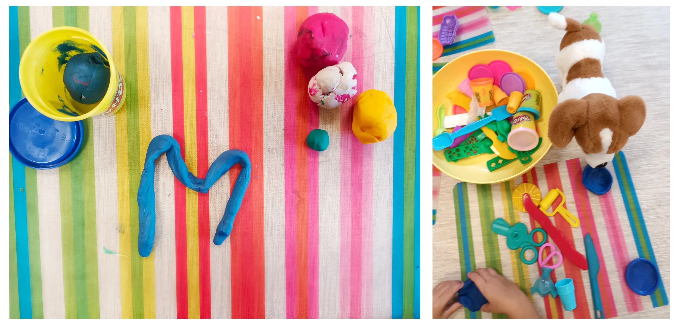 Vymodelujeme písmeno M z modré modelíny a malou misku pro naše mazlíčky.