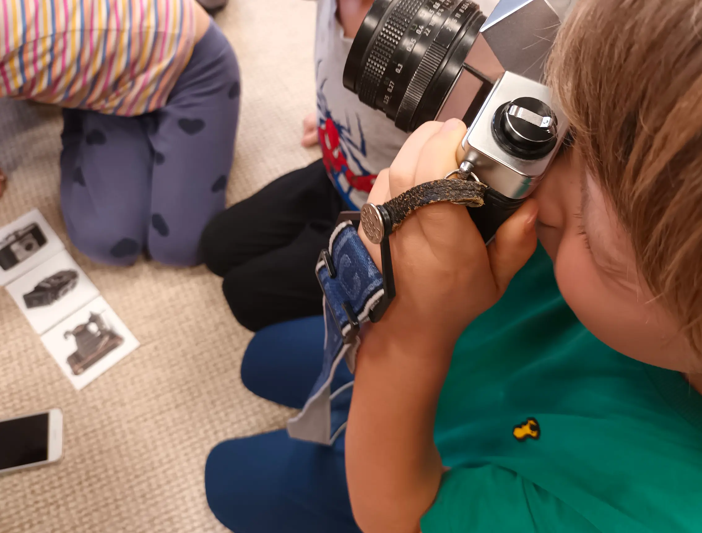 Prarodiče mají stará krásná alba a rádi vypráví příběhy o lidech na fotkách. Dětem nabídneme možnost objevovat, jak lze uchovat vzpomínky na rodinu a blízké prostřednictvím fotografií. Na začátku si společně prohlédneme starší fotoalba a povídáme si o tom, proč lidé fotografie pořizují a jakou mají hodnotu. Děti přemýšlejí, koho by si do svého rodinného alba zařadily, jaké okamžiky by chtěly uchovat a proč je důležité si je připomínat. Ukážeme si, že fotografie jsou rodinnou památkou, která může být cenná i pro naše děti, vnoučata atd. Společně si představíme vývoj fotoaparátů s pomůckou VÝVOJ FOTOAPARÁTU a ukážeme si různé druhy fotoaparátů - digitální fotoaparát, starší typ na film i fotoaparát, který tiskne snímky hned po pořízení. Děti si mohou prohlédnout filmové negativy a zjistit, jak se z nich dříve fotografie vyvolávaly. Poté se vyfotíme i moderní cestou pomocí tabletu nebo mobilního telefonu a ukážeme si, že dnes lze fotografie uchovávat i v online albu. Děti tak získávají představu o tom, že uchovávání vzpomínek může mít mnoho podob. Společně zkusíme vytvořit album naší domácnosti. Necháme děti nafotit snímky a dáme jim k dispozici výtvarný materiál a barevné papíry pro scrapbook. Album pak dotvoříme popisky. Jednotlivými listy alba můžeme vyzdobit naše centrum.