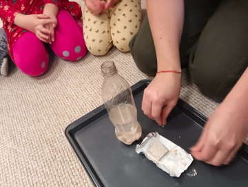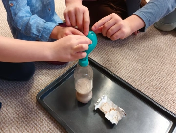 Ukážeme si, jak rozdělat kvásek a vysvětlíme si, co jsou kvasinky. Kvasinky jsou maličké organismy, které nemůžeme vidět pouhým okem, ale pokud je dáme do tepla a dáme jim cukr, začnou ho “jíst” a vytvářet plyn. Tento plyn také vidět nemůžeme, ale budeme pozorovat, jak nám nafoukne balónek.