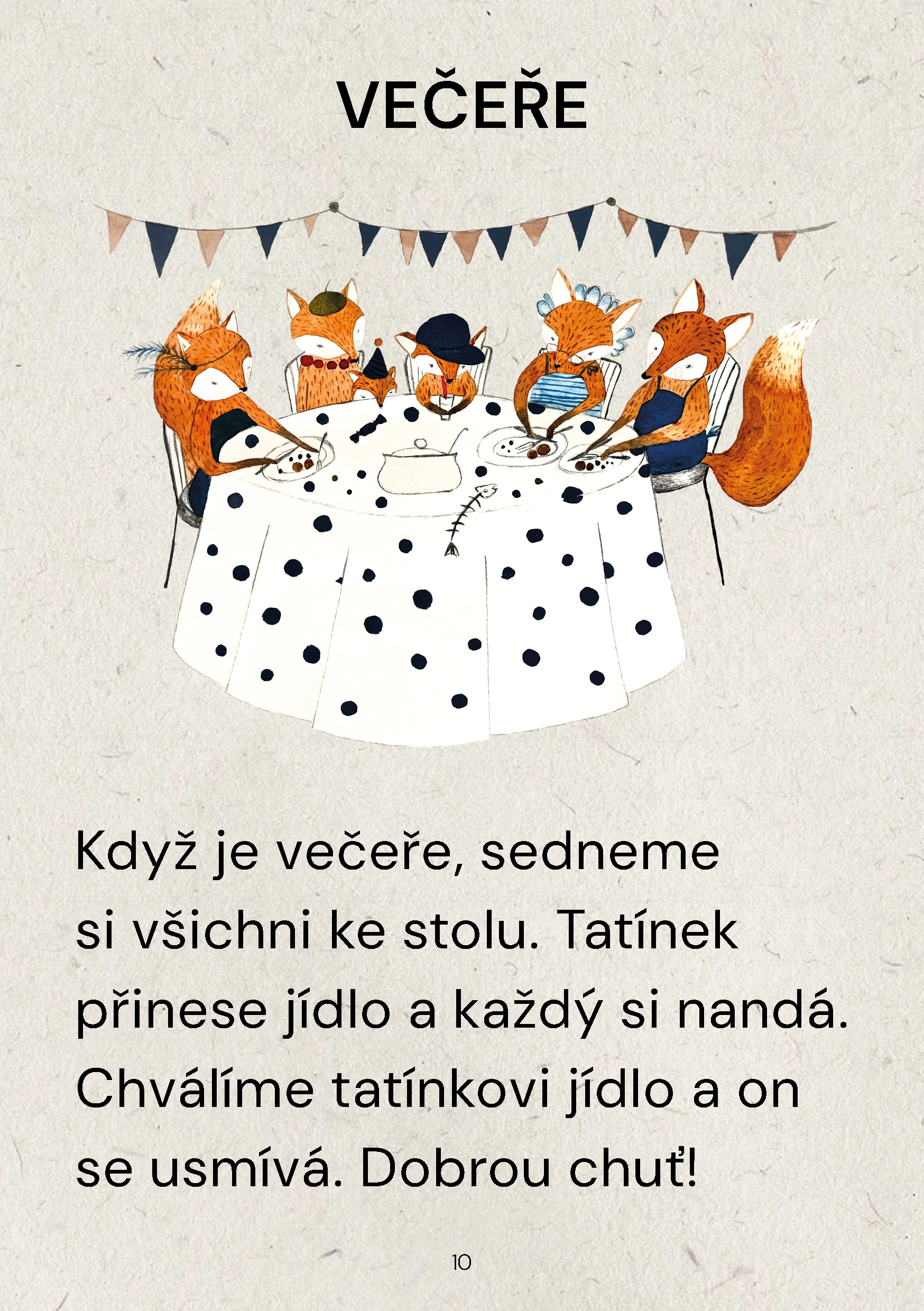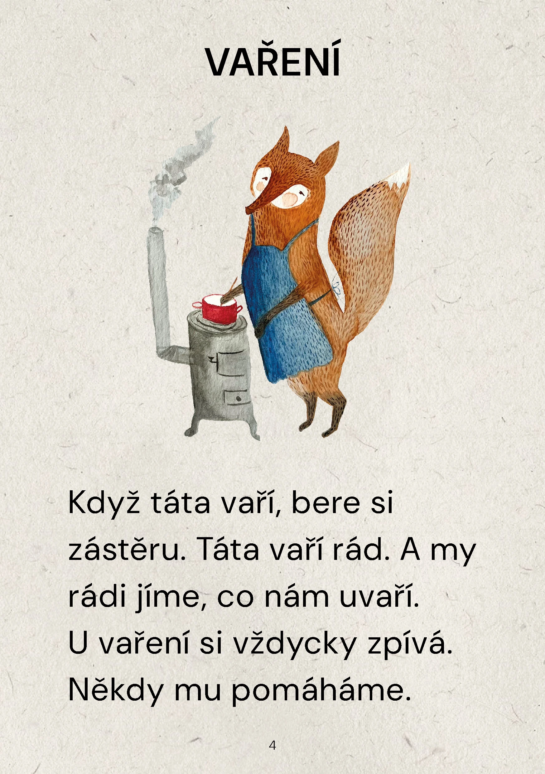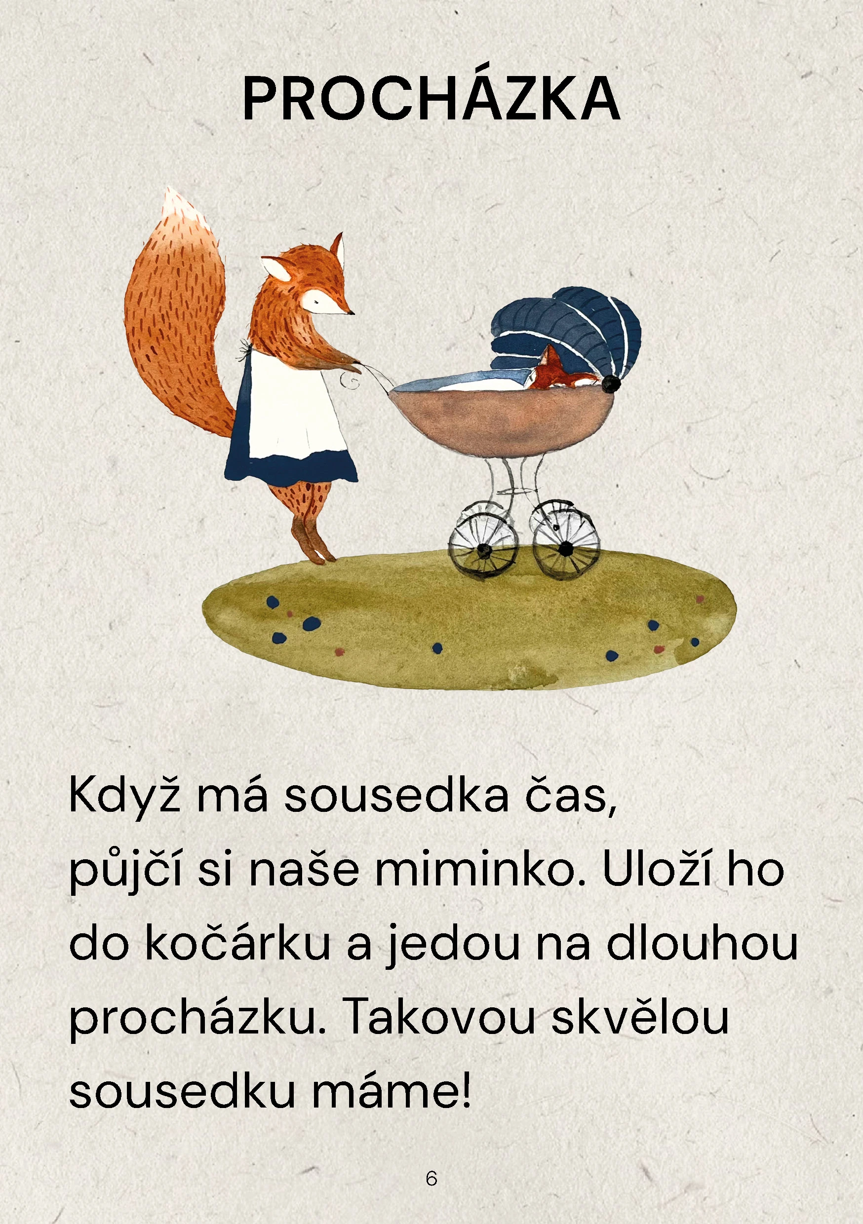 Naše rodina je velká! Rádi trávíme čas spolu, ale každý někdy potřebuje být také sám. Děda si rád zajde do lesa, sousedka si ráda půjčí naše mimi a my můžeme chvilku odpočívat. Babička mezitím doplete dědovi svetr.