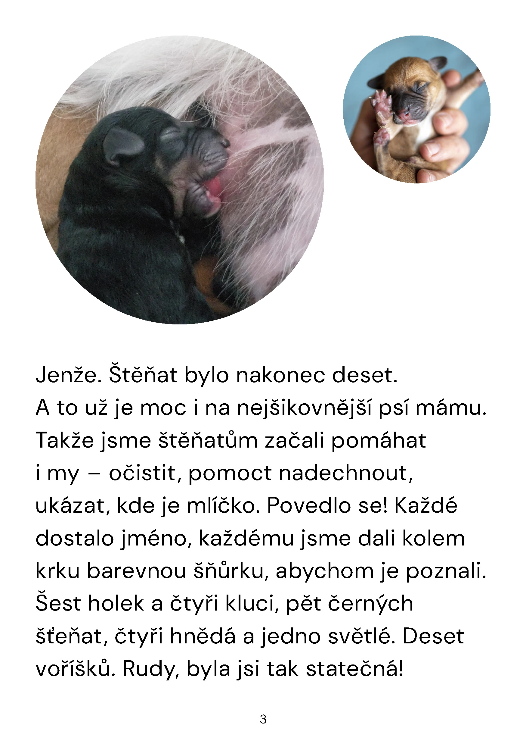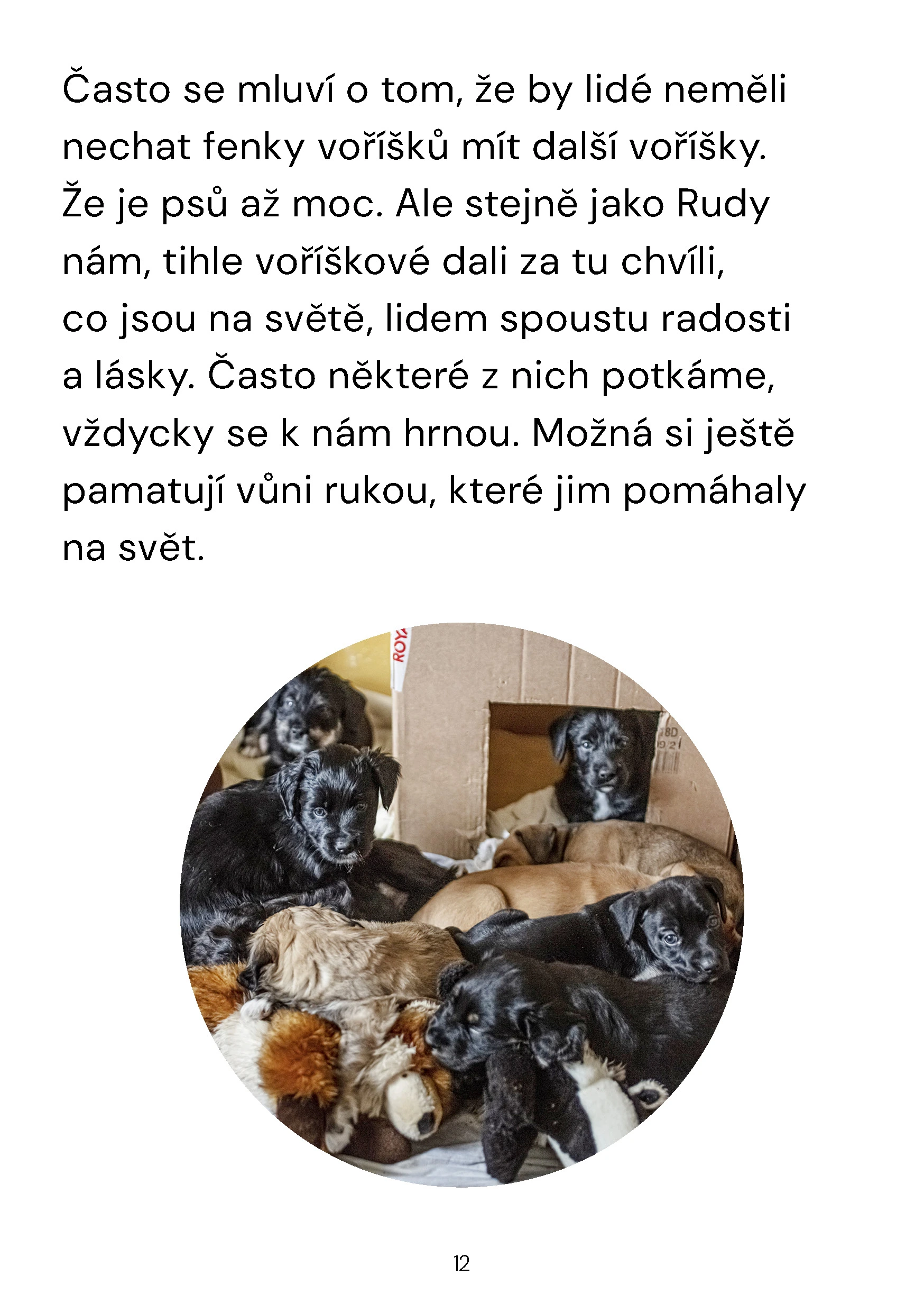 Rudy je nejlepší voříšková máma v okolí. Vždyť se jí narodilo deset malých voříšků! Umíte si to představit? Tenhle příběh se doopravdy stal. A vy si ho můžete přečíst a prohlédnout si všechny ty kňučící kuličky pohromadě v jedné knížce.