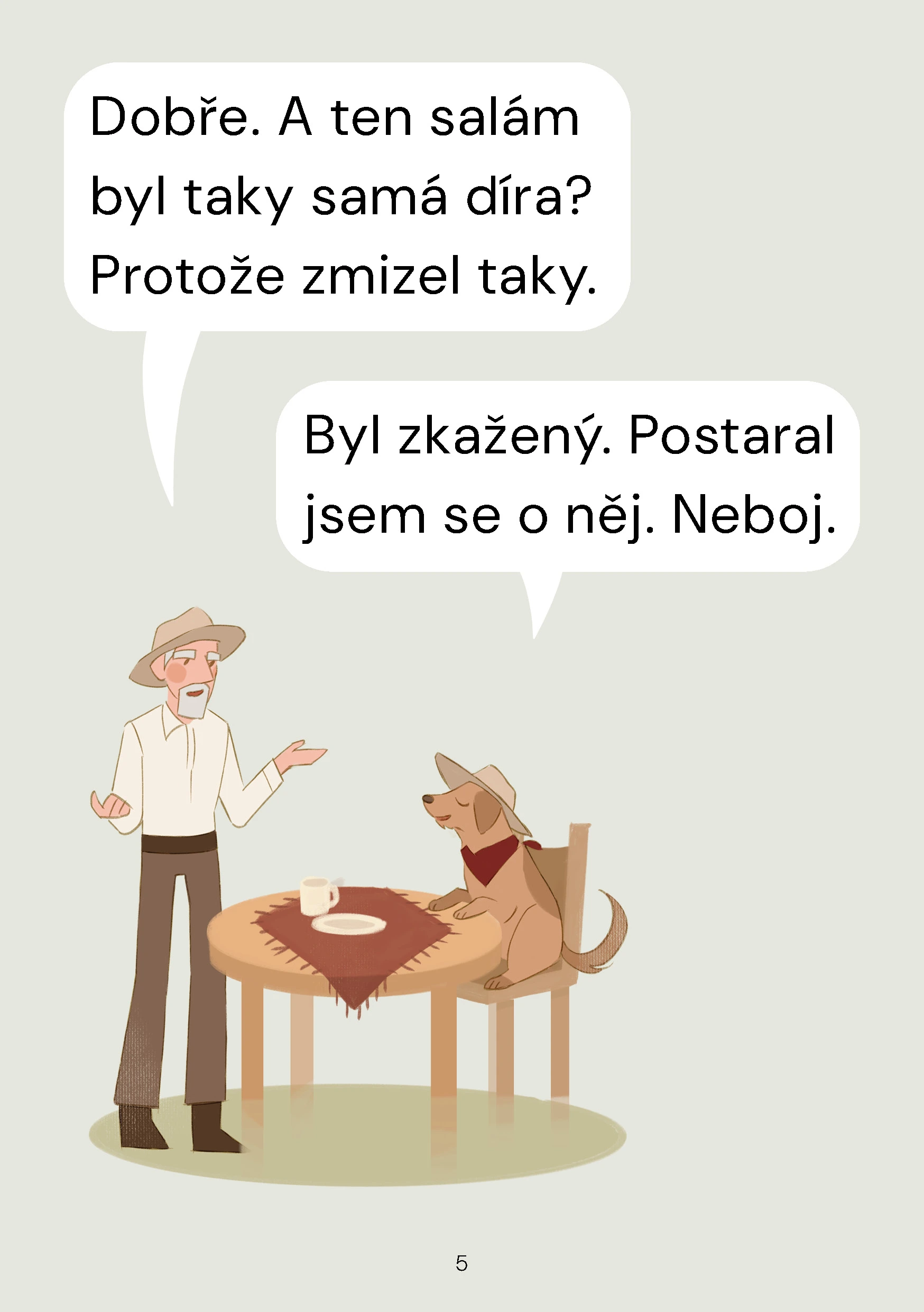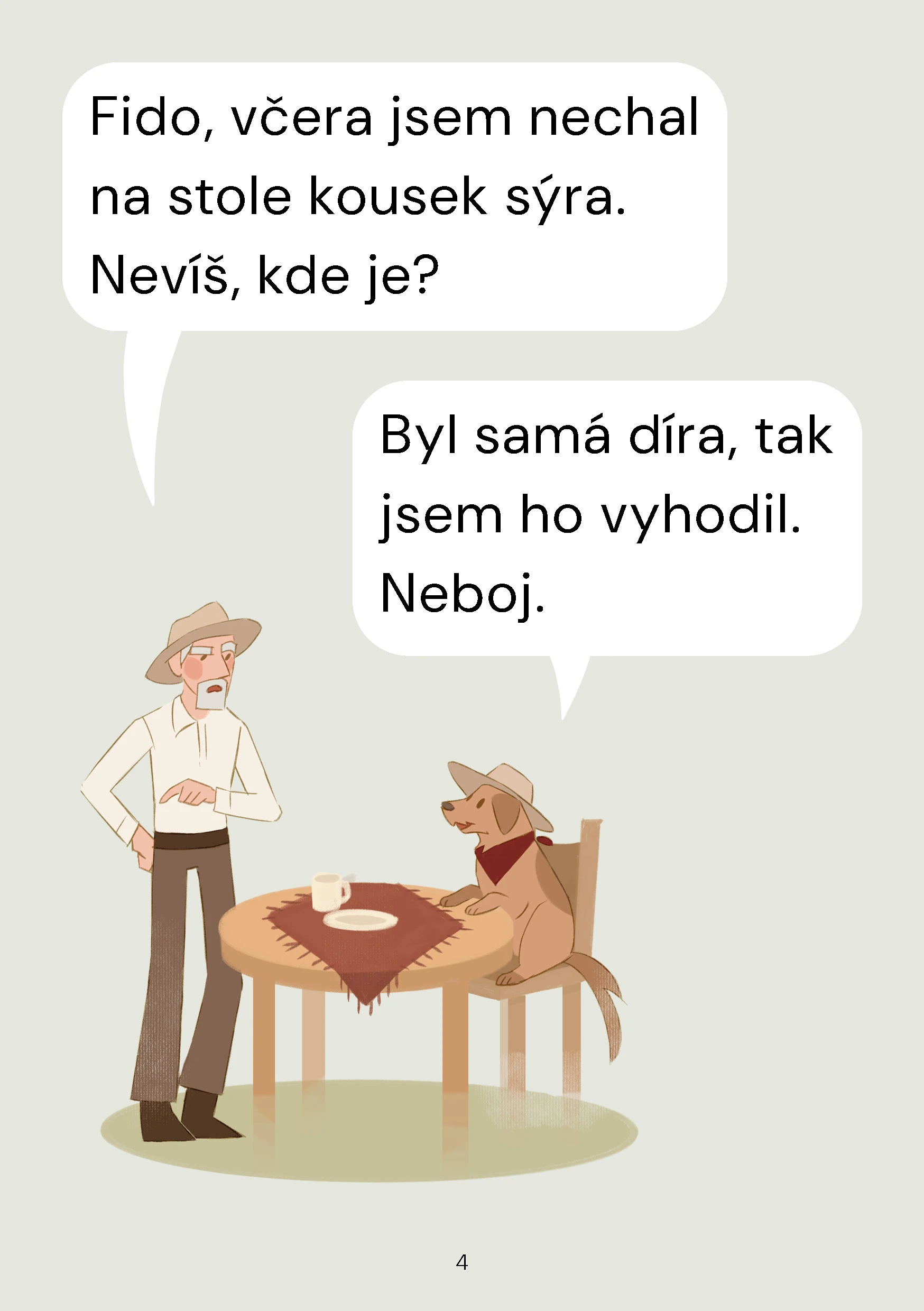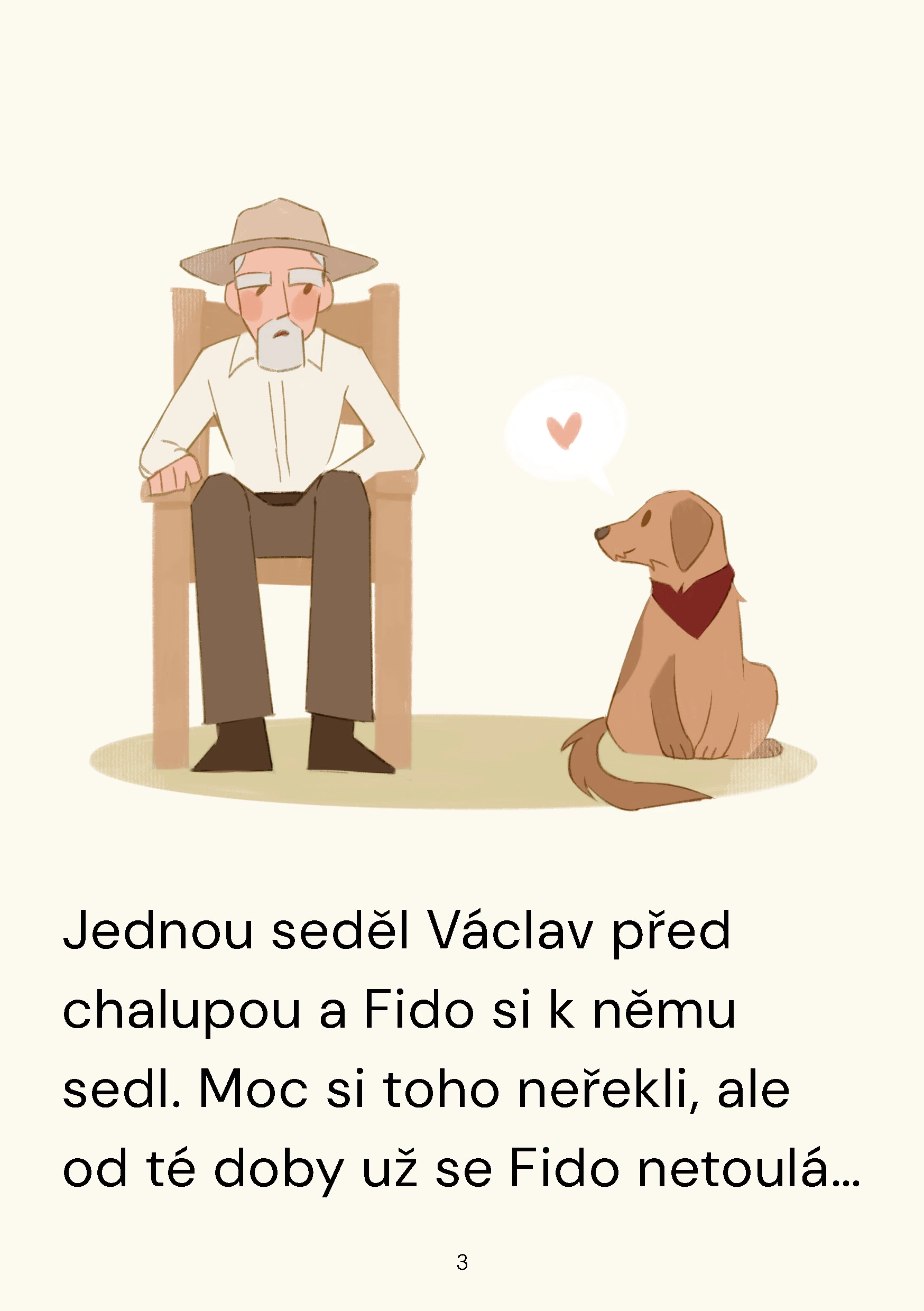 Každý přece ví, že psi nerozumí lidské řeči. Jenže Václav a Fido spolu bydlí v jedné chalupě a povídají si celé dny. Jeden bez druhého si život nedokážou představit. I když by to nikdy, nikdy nepřiznali.