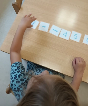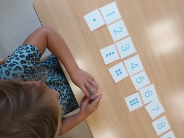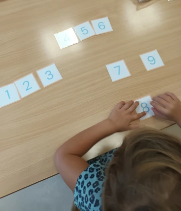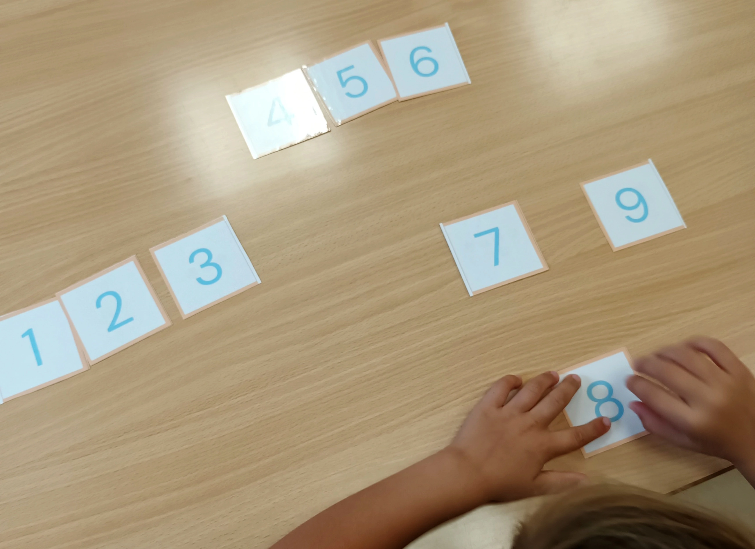 S dětmi, které již dobře rozeznávají jednotlivé číslice, můžeme trénovat jejich posloupnost v řadě, seřadit je od 1 do 10, ale také opačně, od 10 k 1. Když má dítě řadu hotovou, můžeme úkol dále rozvést. Dítě bude mít za úkol ukázat a pojmenovat kartu s číslem, které je hned před číslem X, hned za číslem X, nebo vyjmenovat/otočit všechna čísl před aX, všechna čísla za X.