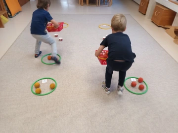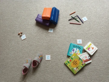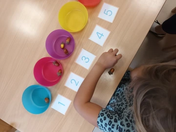 Do všech koutů zajděte a tolik věcí, co na kartičce číslo/puntíků je, přineste. Děti si prohlédnou číselnou kartu a vytvoří hromádku z libovolných předmětů v počtu, jaký je na kartičce. Úkol můžeme ztížit tím, že předměty v jedné hromádce nemají být stejné.