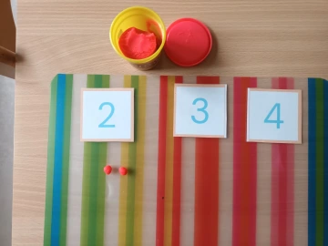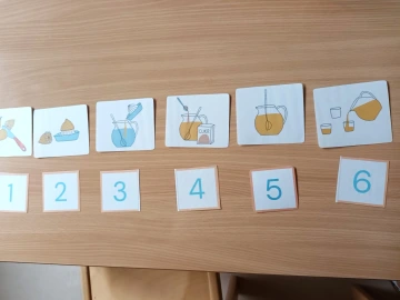 Číselné karty můžeme používat k označení postupu práce či návodu, který se skládá z jednotlivých kroků. Děti vyloží číselné karty do správného pořadí, zleva doprava na podložku a k číslům dle posloupnosti procesu řadí jednotlivé kroky/obrázkové karty.