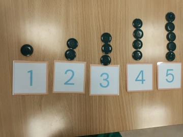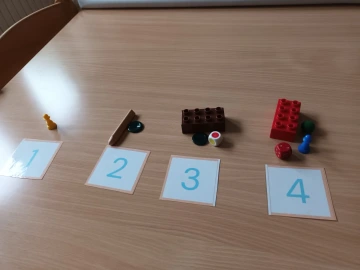 V předešlé aktivitě jsme přiřazovali objekty k číselným kartičkám. Nyní se jejich využití otočí a budeme číselné karty přiřazovat k objektům, které vidíme na ilustracích, na stole v hromádkách či na vlastních kresbách.
