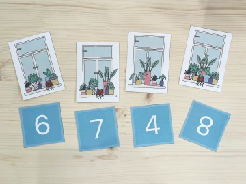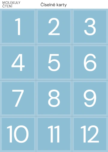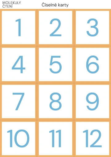 Rozložíme před děti několik číselných karet. Počet karet a jejich uspořádání záleží na věku a schopnostech dětí. Číselnou řadu si mohou na omezenou dobu prohlížet a zkusit si ji zapamatovat. Paní učitelka ji pak zakryje a jedno dítě se pokusí číslice pomocí své sady karet napodobit ve správném pořadí. Společně zkontrolujeme.