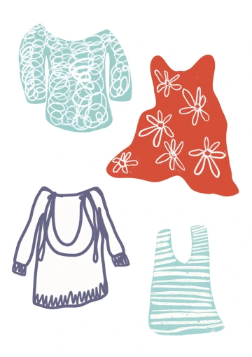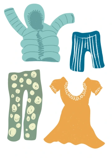 3 A4 s většími kusy prádla na vystřihnutí, 2 A4 s obrázky pověšeného prádla k rozstříhání