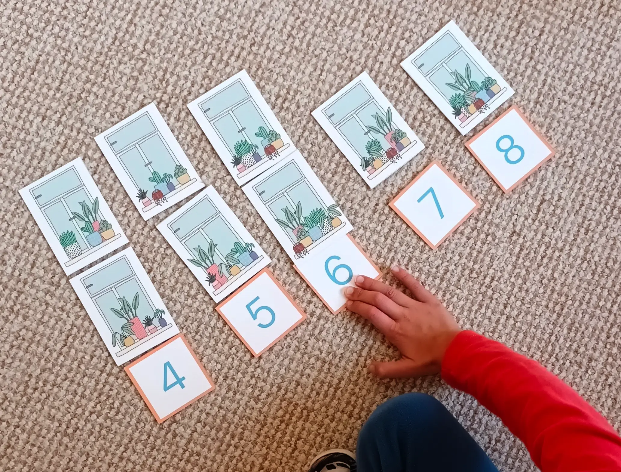 Množství označíme číselnými kartami nebo drobnými předměty jako jsou kamínky či knoflíky. Kartičky můžeme také seřadit podle počtu od nejmenšího po největší, porovnávat množství apod.