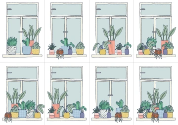 Prohlédneme si jednotlivá okna a spočítáme, kolik je na každé kartičce květináčů.
