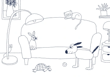 Před zahájením práce si obrázek společně popíšeme. Spočítáme domácí mazlíčky. Děti si samy volí barvy a způsob vybarvení. Omalovánka slouží k samostatnému, klidovému tvoření a dotváří téma domácích mazlíčků.