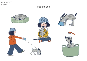 Společně si plakát prohlédneme a povíme si, co jednotlivé symboly znamenají. Ukazujeme dětem, jak si mohou připomenout, co všechno pes potřebuje. Děti si postupně propojují jednotlivé obrázky s jejich významem. Plakát umístíme na viditelné místo, ideálně tam, kde děti pracují s tématem domácích mazlíčků.