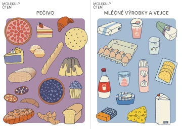 Pomůcka se skládá z osmi karet, které krásně reprezentují jednotlivé zástupce konkrétních skupin potravin, které běžně nalezneme v obchodech. Kartičky si prohlédneme. Nejprve zmíníme název skupiny (slovo nadřazené) a poté s dětmi pojmenujeme konkrétní druhy, které do skupiny spadají (slova podřazená). Vymýšlíme další potraviny, které by se do jednotlivých skupin hodily. Karty nám velmi dobře poslouží při zařizování obchůdku. Děti je využijí při zařizování a plnění jednotlivých oddílů, polic či mrazniček. Části obchodu můžeme kartičkami označit.
