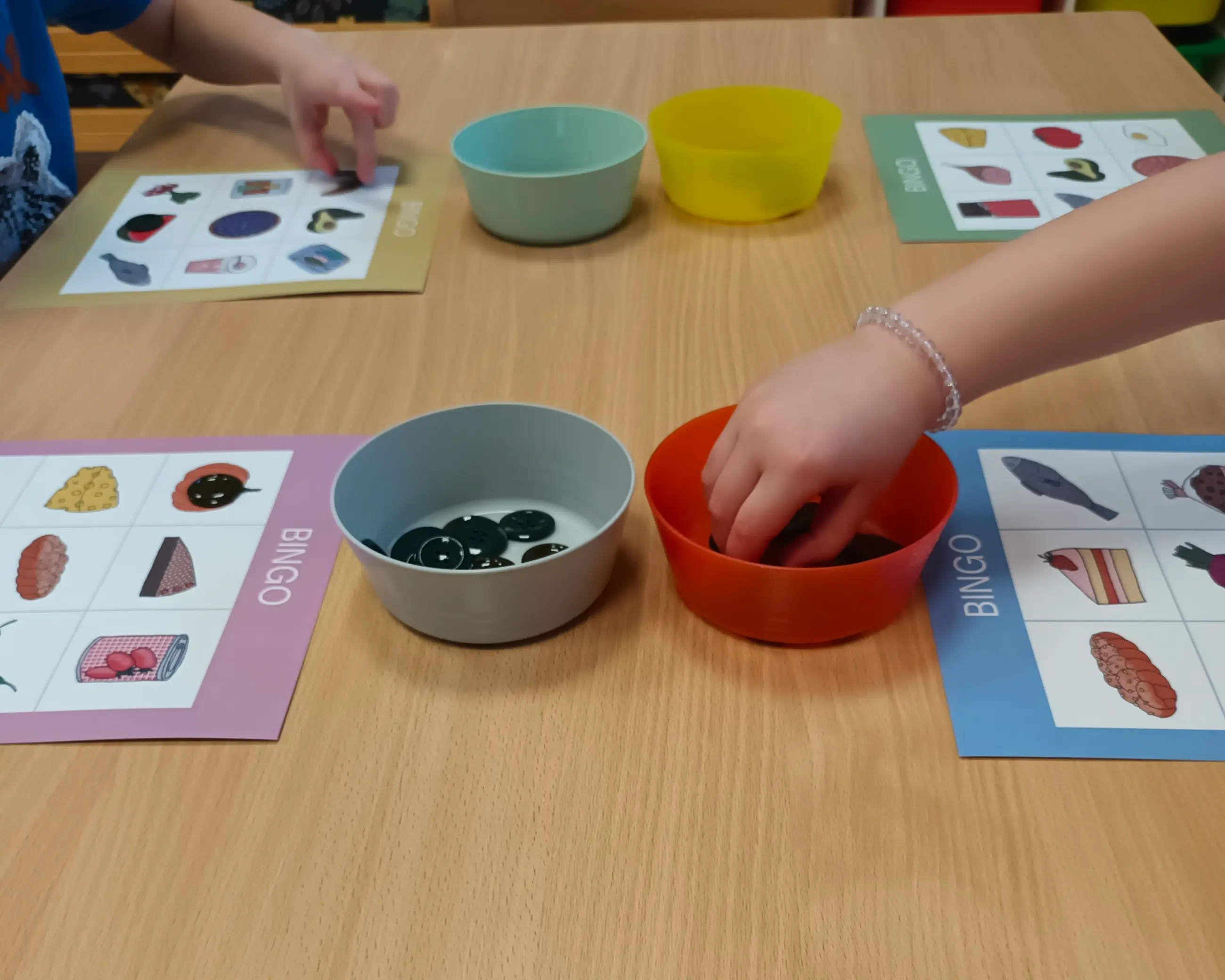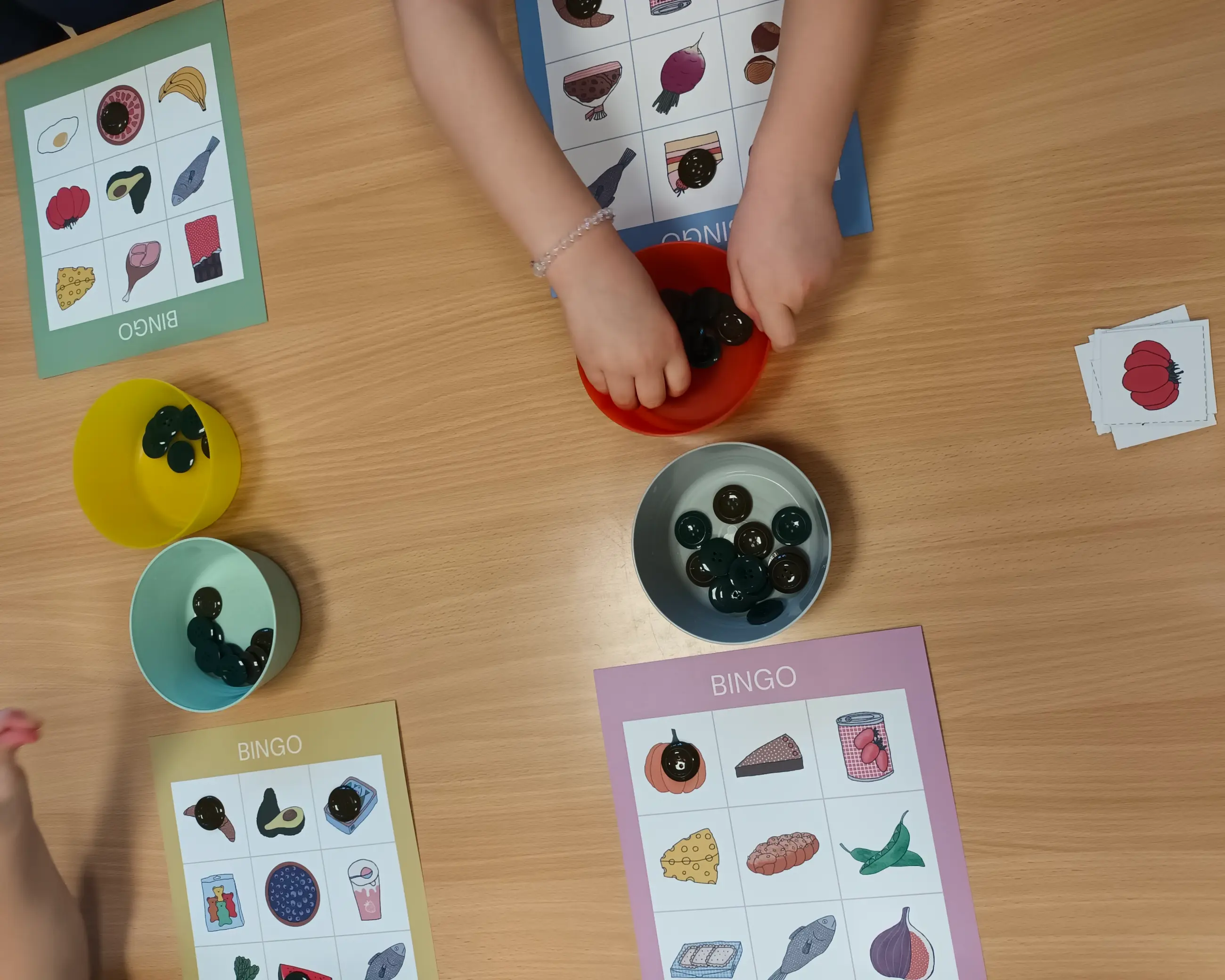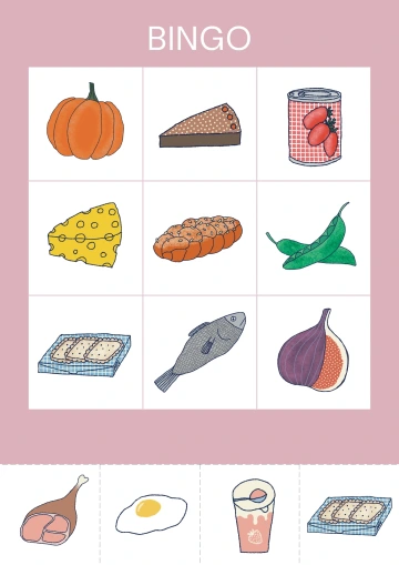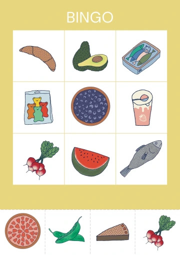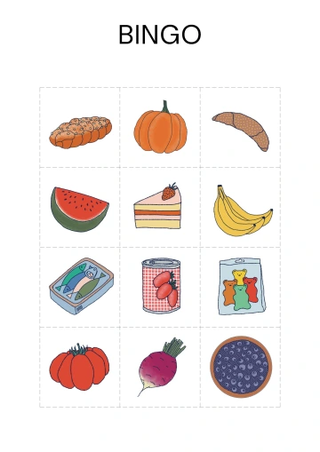 Po odstřihnutí spodních okrajů s obrázky získáme do hry 4 hrací karty. Každou pro jednoho hráče. Do pytlíku či košíčku vložíme všechny zbylé vystříhané čtverečky s jednotlivými obrázky. Hra může začít. Jedno dítě bude z košíčku vytahovat čtverečky s obrázky, které bud´ jmenuje nebo ukazuje zbylým hráčům. Hráči vytažený obrázek hledají na své hrací kartě. Pokud ho najdou, označí ho (knoflíkem, kamínkem apod.) Cílem hráče je být prvním, kdo dokáže označit na hrací kartě všechny obrázky buď v sloupci, v řádku, nebo v diagonále. Pak může vykřiknout „Bingo!“ Pokud děti hrají poprvé, názorně (třeba s pomocí pravítka) si ukážeme, co je řádek, sloupec a diagonála