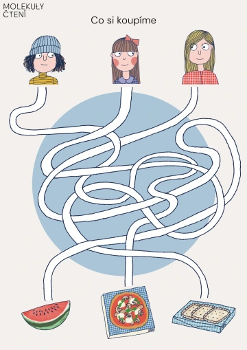Společně si prohlédneme obrázek bludiště, jednotlivé postavy a jaké dobroty se nacházejí na konci jednotlivých cest. Děti sledují prstem nebo mazací tužkou na folii cestu od vybrané postavy a snaží se projít spletí čar až k cíli. Jejich úkolem je zjistit, jaká potravina danou postavu na konci bludiště čeká, a tím odhalit její chuťové preference. Jakou cestou by ses vydal(a) ty?